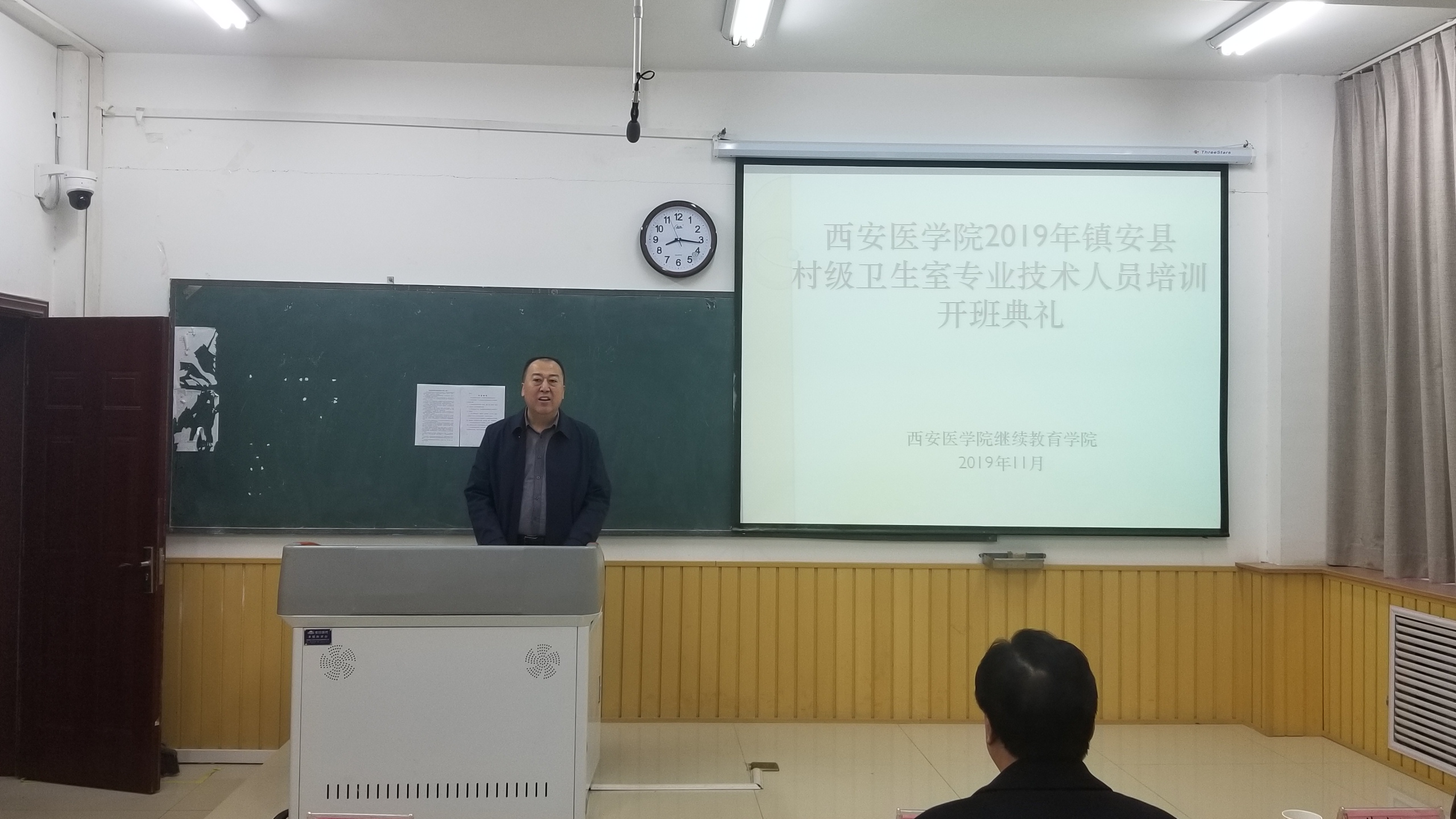 镇安县卫健局张先富局长做了讲话。他通过标准村卫生室建设的五项十六条标准指出,目前村卫生室建设过程中存在不规范、制度不健全,村医务室人员医疗卫生知识缺乏等问题,加强培训,掌握基本理论和实用技能,对于镇安县乡村基本医疗保障和脱贫攻坚具有非常重要的意义,县委县政府都高度重视这次培训工作。他对培训工作提出了四点要求:一是要求参训学员珍惜培训学习机会,认真学习,取得满意的学习效果;二是要求加强管理,禁止迟到、早退和无故缺课现象;三是要求参训学员要服从管理,遵守纪律和培训单位的规章制度;四是要求学员注意安全。